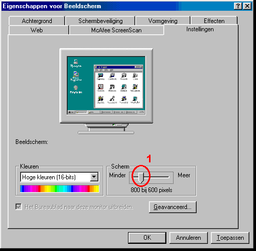 Om uw schermresolutie aan te passen gaat u als volgt te werk: